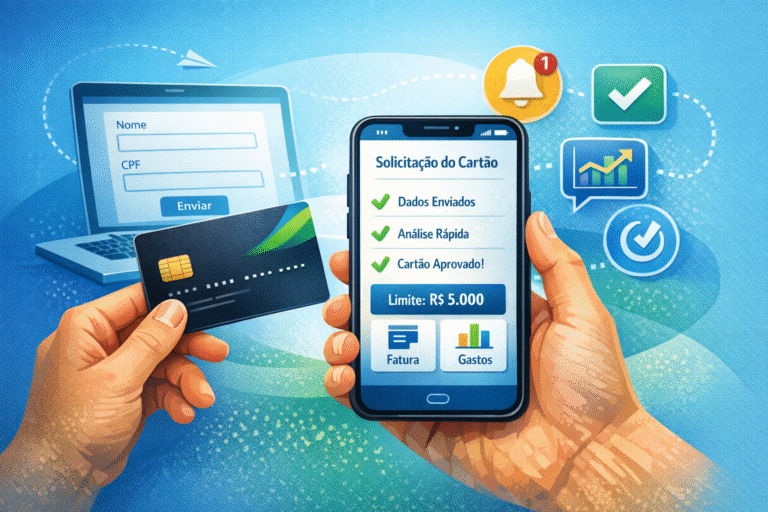 Conheça cartões com solicitação mais simples, controle pelo app e processo totalmente digital.